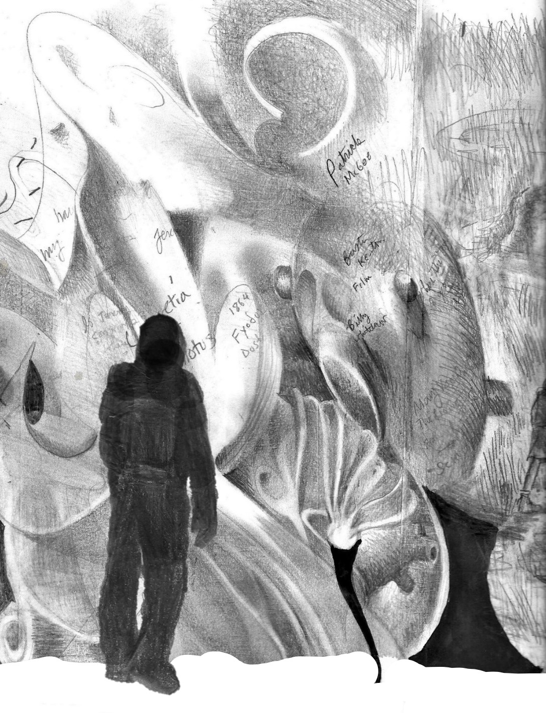 I remembered a graphic novel I had just read by the Belgian-French team of Francois Schuiten and Benoit Peeters, The Leaning Girl. I wanted to tell Billie but decided to leave her alone. The Leaning Girl told of a young woman, Mary Von Rathen, who could only stand at an acute angle. Her gravity-defying condition proved to be an opening into another dimension. The storytelling and drawing beautifully visualized an elegant, Jules Verne/steam-punk world of “The Obscure Cities.” Maybe I could use a little of that. A memory of envy and longing flitted by and was gone. I used to be hungry. Ambitions to build my own alternate worlds filled sketchbooks. But let’s stay moored to facts, and the quotidian. Now my drawings doodle across my classroom handouts and whiteboards, like a leak in the pipes that I must get fixed. Fix things. Batten hatches. Katy bar the door. Attach that fourth leg to the chair. My son could float and lean and hang like that. Defy gravity. Of course, he loved free climbing. There was some kind of accident. But back to the bug lesson: