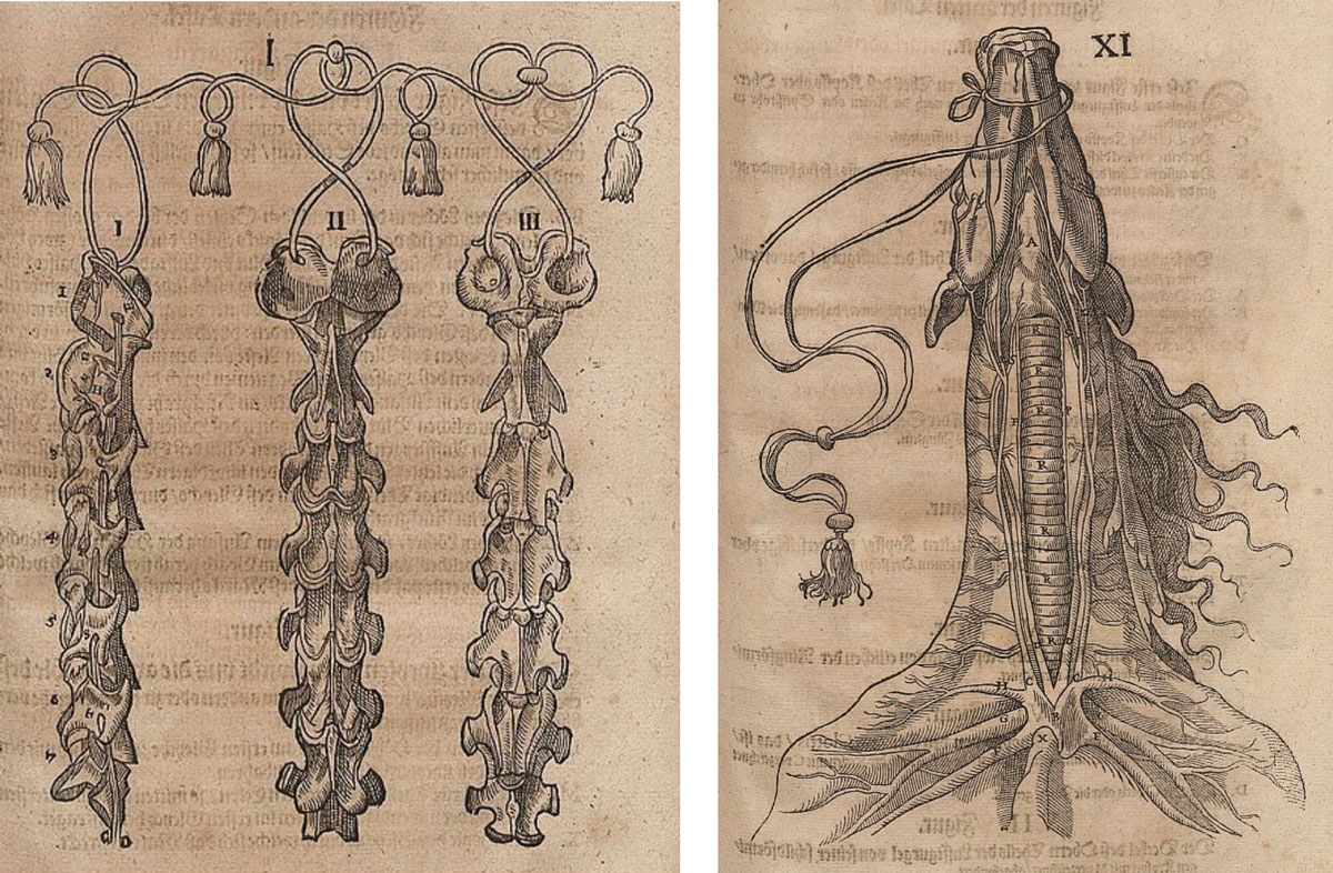 I find the spine shown from three angles. Each column is a tessellation of bones strung like flowers to dry. They are linked by a tasseled rope that must have, by the pride of it, been golden thread. The flesh is splendid, each diagram adorned. In another drawing, the same tassels threaded through the spine are now wrapped around the mouth of the horse whose throat is splayed to show its esophagus. The horse has been split by a scalpel down the middle, but his hair still blows in the wind. Ribbons of mane are curled just like the rope, both reins and tendrils drawn in ringlets. Veins and tendons frame the organs in symmetrical branches. I have no other word for them but ardent. In table I of book III, two human hands have been drawn pulling back the skin to reveal the heart. The cut spans the entire length of the horse’s stomach. No bones. The heart is twice the size of the hands revealing it. The horse’s eyes are drawn blank.